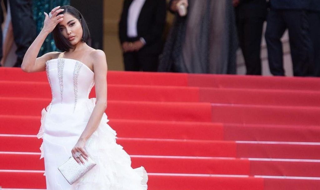 تألّقت النجمة التونسيّة درّة زروق بإطلالة مميّزة على البساط الأحمر لمهرجان “كان” تألّفت من ثوب عاري الكتفين باللون الأبيض المعدني حمل توقيع دار Rami Kadi نسّقته مع مجوهرات ماسيّة من Chopard.