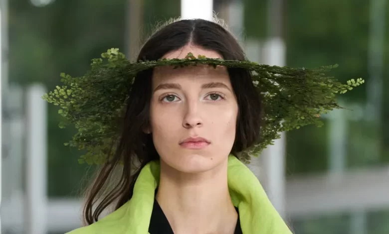 أما في عرض دار إيسي مياكي Issey Miyake، في أسبوع الموضة بباريس لربيع وصيف 2025، خطفت العارضة الأنظار، حيث زيّنت شعرها المنسدل بأكسسوار ضخم ولافت، مصنوع من أوراق النباتات الخضراء، ملتف حول الرأس بشكل دائري؛ ليشكّل ما يشبه قبعة نباتية، ما أضفى لمسة من النقاء والهدوء على الإطلالة. يجسد هذا الأكسسوار فلسفة Issey Miyake في الانسجام مع الطبيعة والاحتفاء بأشكالها المتنوعة، باستخدام عناصر مستوحاة من البيئة.
