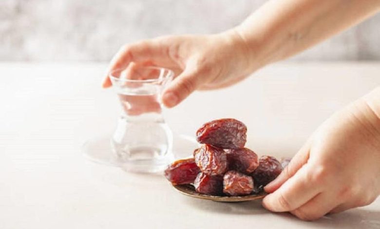 – وجبة الإفطار: 7 حبات تمر مع كوب ماء.