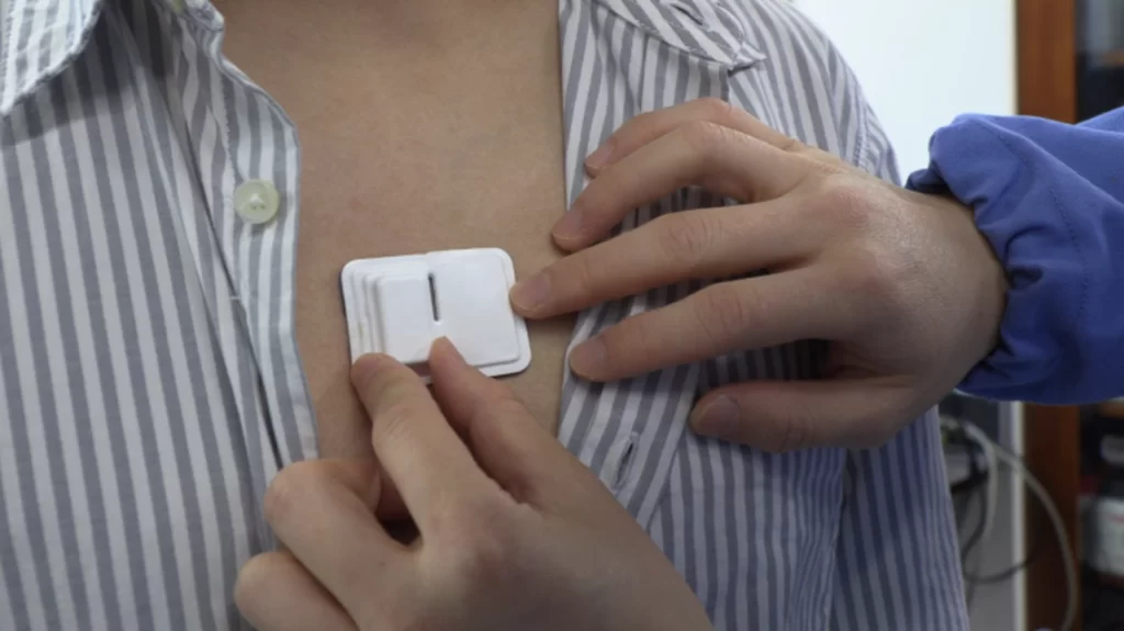 ويتصل الإصدار الجديد من جهاز تنظيم ضربات القلب لاسلكيًا بأربعة أجهزة إلكترونية ناعمة أخرى، ملتصقة مؤقتًا بالجلد في أجزاء مختلفة من الجزء العلوي من جسم المريض.