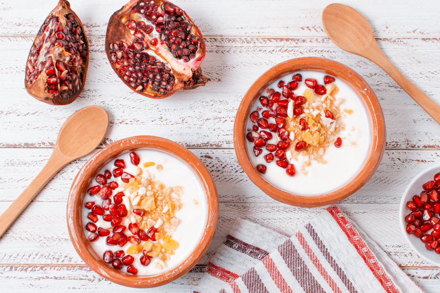 - إضافة بذور الرمان إلى الزبادي أو اللبن الرائب.
