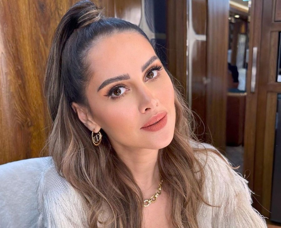 وفي إطلالة أخرى، بدت ياسمين رئيس بمظهر مشرق للغاية، إذ تألقت بمكياج مات متوهج طغت عليها النغمات المشمشية لكل من العيون والشفاه، إلى جانب الأيلاينر المسحوب إلى الأعلى خارج العين. كما اختارت تسريحة الشعر الويفي نصف المرفوع، مع الغرة المشدودة بالكامل إلى الوراء.