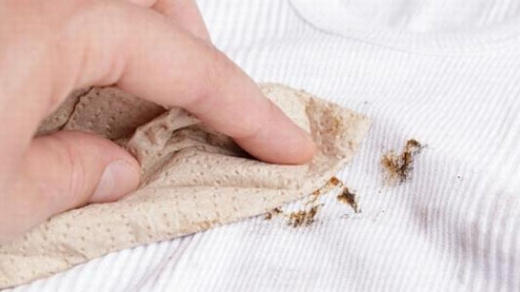 وبهذه الآلية سيتمّ امتصاص بقعة الزيت على القطعة القماشية. تكرار الخطوات من 2 إلى 4 مرات حتّى يتمّ التخلص من البقعة نهائياً،