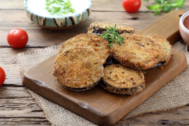 - سخني الزيت في مقلاة عميقة واقلي الباذنجان في الزيت الحامي حتى يتقرمش ويصبح ذهبي اللون.