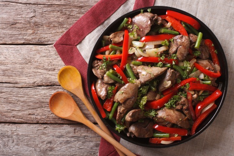 قومي بعمل تجويف في منتصف الطاسة، وضعي الكبدة لدقائق ثم قلبيها مع البصل.