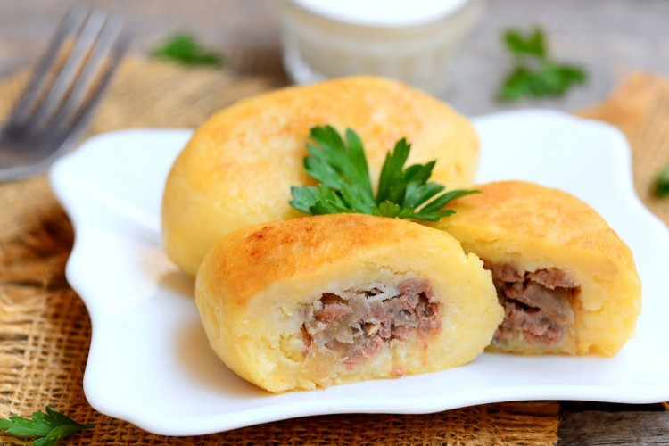 شكلي كرة من خليط البطاطس وبسطيها ثم احشيها بكمية مناسبة من اللحم وأغلقيها على شكل قرص.