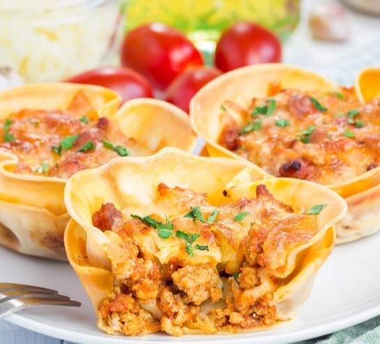 - أحضري قالب الكب كيك، ضعي في كل نافذة من القوالب ورقة لازانيا.
