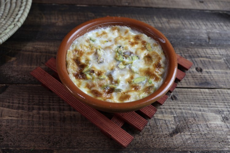 - اتركي الطاجن الفخاري لحوالي من 5-10 دقائق حتى تتشرب العجين الحليب.