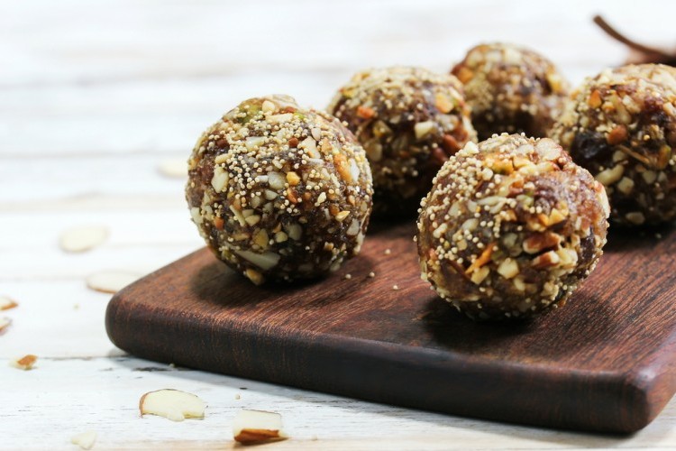 - قومي بخلط الجوز والتمر، وجوز الهند، والزبيب، وزيت السمسم، وملح البحر، والفانيليا معاً في معالج الطعام حتى تمتزج.