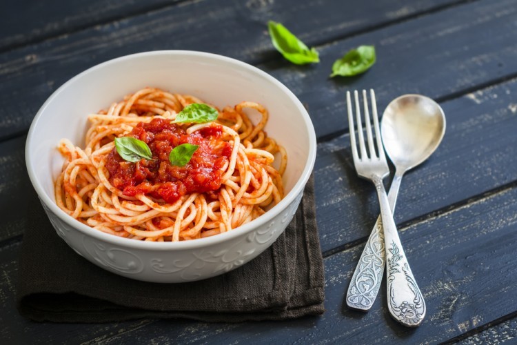 - اتركي السباغيتي تُطهى مع الصلصة لمدة خمس دقائق تقريباً مع التقليب من حين لآخر حتى تتجانس مع الصلصة جيداً.