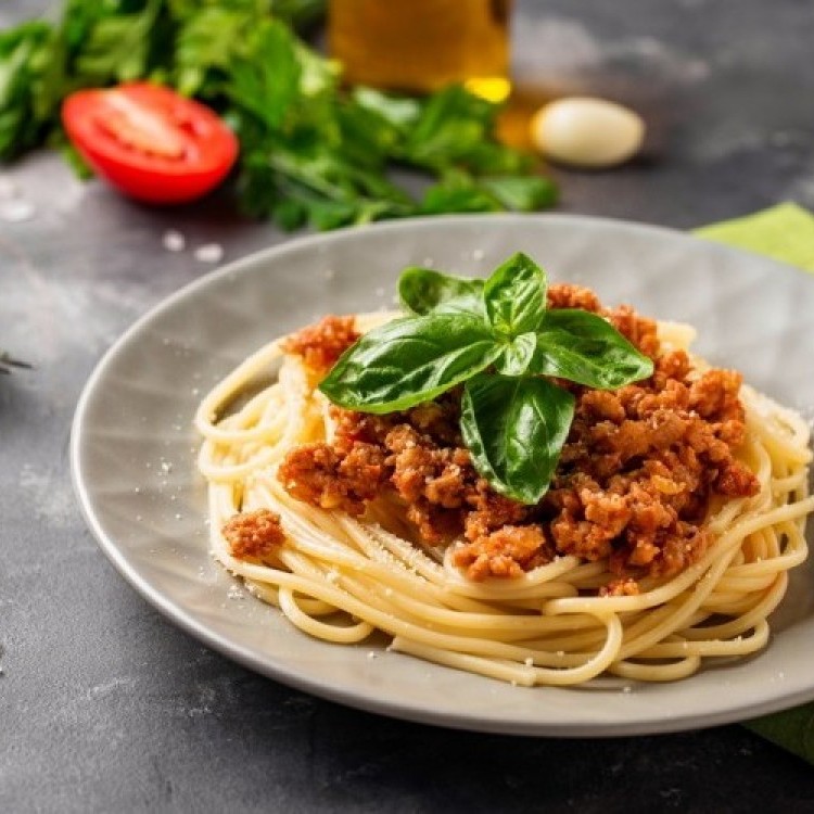 - وزعي الصوص واللحم فوق الباستا وزيني بالريحان الطازج وقدميها ساخنة.