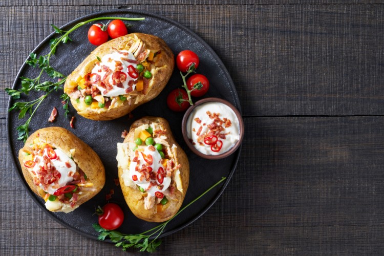 - اغسلي حبات البطاطس جيداً وقشريها، وقسميها إلى نصفين بشكل طولي وفرغيها من النصف لتصبح كالقارب.