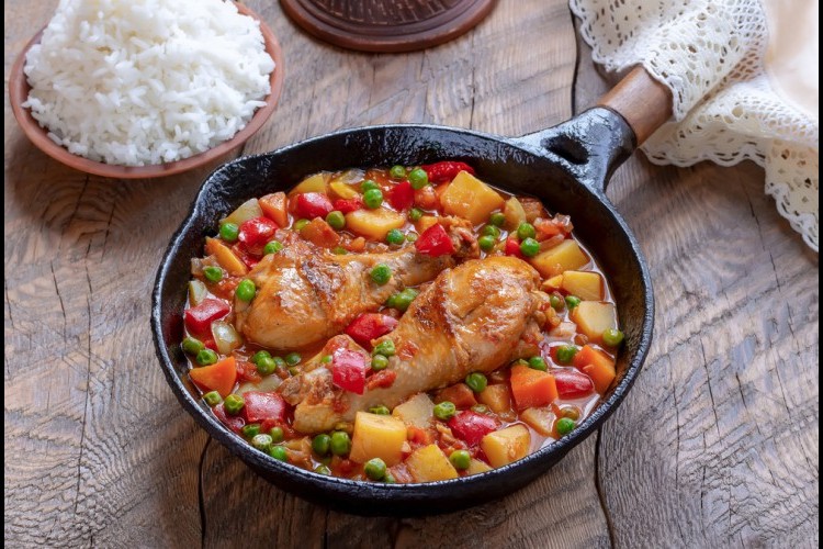 - ضعي جميع الخضراوات في صينية فرن ووزعي فوقها قطع الدجاج.
