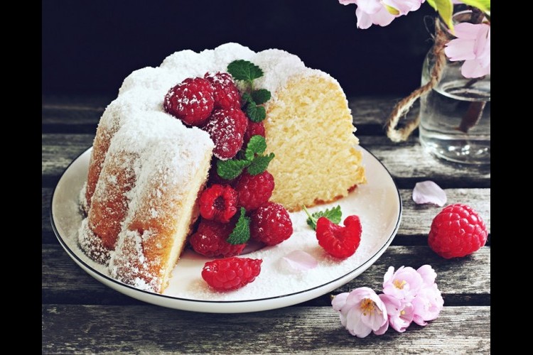 - اتركي الكيك ليبرد ثم رشي قليلا من السكر الناعم وضعي الفواكة الحمراء في الوسط وقدميه.