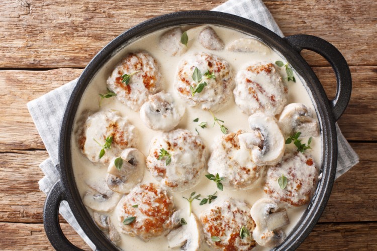 - اسكبي كرات اللحم بالفطر والكريمة في طبق التقديم وقدميها ساخنة.