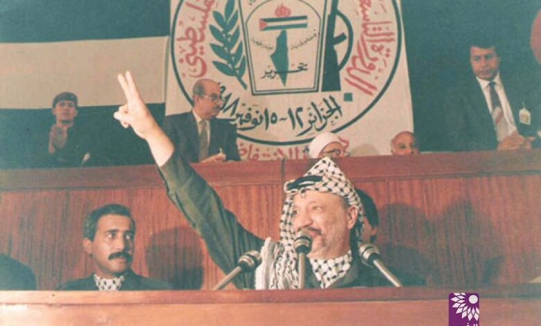 تلفزيون الفجر الجديد- تصادف غدا الجمعة، الذكرى السنوية الخامسة والعشرين لإعلان استقلال دولة فلسطين، عندما أعلن الزعيم الراحل ياسر عرفات في الخامس عشر من تشرين الثاني عام 1988، وثيقة الاستقلال من الجزائر.