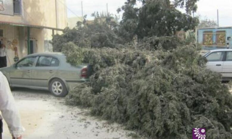 تحطم 4 سيارات إثر سقوط شجرة شرق قلقيلية