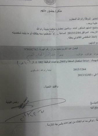 بلاغات لأمناء سر واعضاء اتحاد المعلمين للحضور امام نيابة رام الله