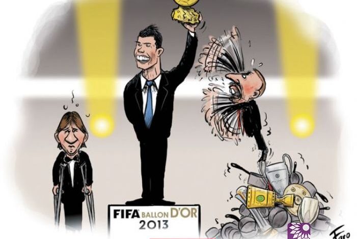 ورغم أن "فرانس فوتبول"، صاحبة جائزة "الكرة الذهبية" قبل أن تشارك الفيفا في منحها سنويا لأفضل لاعب في العالم، الا أن روح الدعابة وربما السخرية كانت قائمة في هذا الرسم "كاريكاتير" الذي يعبر بشكل غير مباشر عن عدم رضا واقناع الفرنسيين باختيار رونالدو للقب على حساب مواطنهم المدجج بالالقاب الخمسة التي حققها مع الفريق البافاري بينما لم يحقق رونالدو أي لقب مع ريال مدريد في 2013.