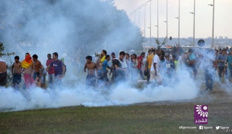 تلفزيون الفجر الجديد- شهدت العاصمة البرازيلية، برازيليا، اشتباكات بين قوات الشرطة البرازيلية ومتظاهرين غاضبين من إنفاق الحكومة مليارات الدولارات لتنظيم نهائيات كأس العالم.