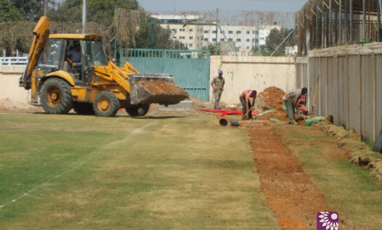 تلفزيون الفجر الجديد / منتصر العناني – يتواصل العمل بوتيرة متسارعة وبشكلٍ متواصل للإنتهاء من مشروع أنارة ملعب بلدية طولكرم ( ملعب الشهيد جمال غانم ) بتوجيهات وبناءً على طلب رئيس بلدية طولكرم المهندس إياد الجلاد والإنتهاء في الفترة المحددة له لإعادة إعتماد الملعب في الدوري الفلسطيني لإستكمال كافة الشروط لعودة الروح إليه وإنعاشه من جديد بسبب التوقف الذي رافق المرحلة السابقة حتى توقيع الإتفاقية مع الشركة التي رست عليها اعمال تنفيذ المشروع , وذلك في إطار إهتمام بلدية طولكرم وإيلائها الرياضيين أهمية عالية ضمن أجندتها واعمالها , وتنفيذاً لذلك فقد انهت الشركة المرحلة الأولى من المشروع بعد (صب القواعد الرئيسية ) كاملة والبدء بالمرحلة الثانية منه .