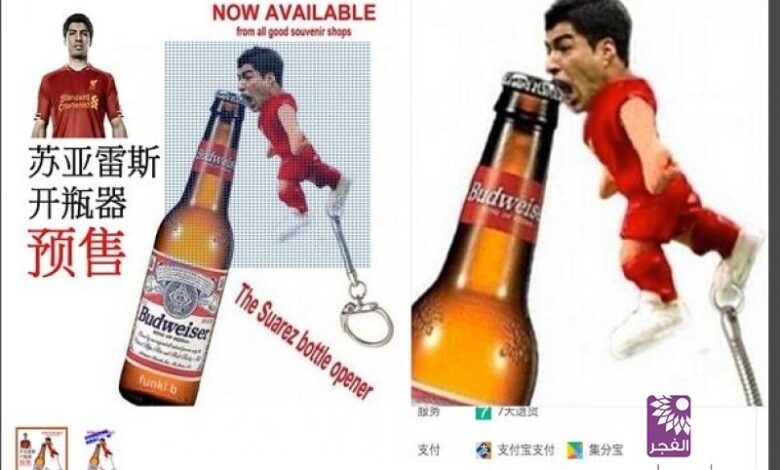تلفزيون الفجر الجديد- باتت فتاحات قناني تحمل صورة لاعب كرة القدم الاروغوياني لويس سواريز الذي اثار صدمة من خلال عضه مدافع ايطاليا جورجيو كييليني في مونديال البرازيل، متوافرة الان على مواقع بيع صينية عبر الانترنت فيما اكد صناعي انه صنع الالاف منها.