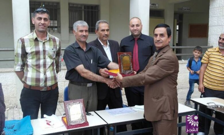 تلفزيون الفجر الجديد- منتصر العناني– كرمت مديرية تربية قباطية قسم النشاطات واللجنة الرياضية وعلى هامش بطولة كرة السلة التي نظمت مؤخراً ممثلة نيابة عن مدير التربية محمد زكارنة حسني الاعرج رئيس قسم النشاطات في مديرية قباطية وعبد اللطيف عثامنة رئيس قسم التعليم العام وراني نزال مدير مدرسة قباطية الاساسية الغربية ومحمد غنام مشرف النشاط الرياضي في المديرية بتكريم كل من حاتم جرار ومحمود الدهون معلما التربية الرياضية واللذان انهيا خدمتهما وكان لهما الباع الطويل في سلك التربية والتعليم وفي المجال الرياضي بشكل خاص 0 وتميز المربيان بالسمعة الطيبة واخلاصهم في العمل وحصد الكثير من الجوائز والالقاب لمدارسهم 0