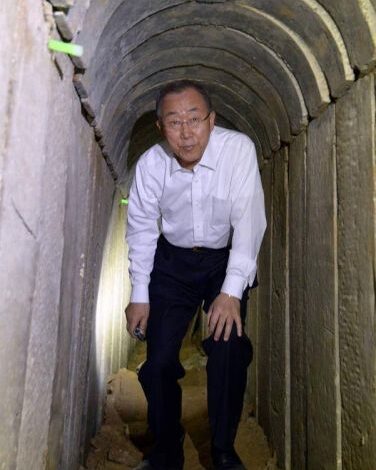 بان كي مون داخل احد أنفاق غزة الهجومية