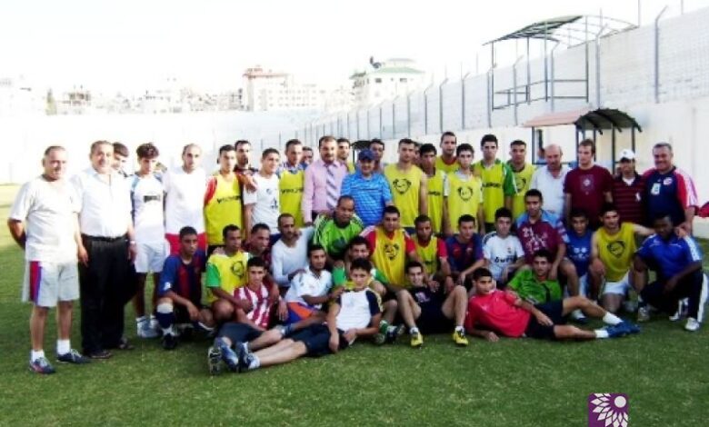 ماجد بلعاوي يتوسط لاعبي نادي ثقافي طولكرم والهيئة الأدارية بعد تقديم طقم ملابس خاص بهم