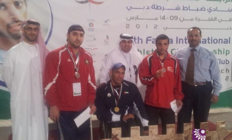 وتحت رعاية سمو الشيخ حمدان بن محمد بن راشد آل مكتوم ولي عهد دبي، وبمشاركة 270 لاعب ولاعبة من 28 دولة عربية وأجنبية، استطاع أبطال فلسطين لألعاب القوى للمعاقين التابع للجنة البارالمبية الفلسطينية من تسجيل إنجاز جديد في افتتاح بطولة فزاع الدولية الرابعة ، حيث أعلن علي النزلي رئيس البعثة عن حصول فلسطين على ذهبية وبرونزيتان في حصاد اليوم الأول للبطولة ، حيث حصل البطل خميس زقوت على ميدالية ذهبية في رمي الجلة فئة 56-55 ، وحصل الرقم التأهيلي 11.34 م وسط منافسة قوية جداً لاثنين من أبطال العالم من البرتغال وأذربيجان، وما أن عزف السلام الوطني الفلسطيني وتقدم العلم الفلسطيني على البرتغال وأذربيجان حتى ضجت المدرجات بالتصفيق لفلسطين ، مما عكس التعاطف العربي والدولي لفلسطين.