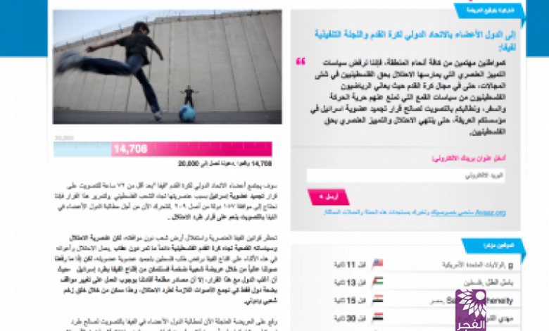 دعوة عالمية للتوقيع على وثقية لتعليق عضوية اسرائيل بالفيفا