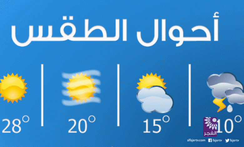 تلفزيون الفجر الجديد- تتوقع دائرة الارصاد الجوية الفلسطينية ان يكون الجو غائما جزئيا، ويطرأ ارتفاع على درجات الحرارة مع بقائها ادنى من معدلها السنوي العام ، والرياح شمالية غربية الى شمالية شرقية خفيفة الى معتدلة السرعة والبحر خفيف ارتفاع الموج .