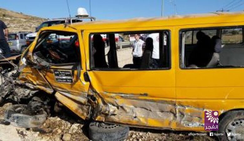 تلفزيون الفجر الجديد– اصيب 11 شخصا صباح اليوم الاربعاء في حادث سير نجم عن تصادم بين مركبة فلسطينية عمومية واخرى استيطانية على الشارع الالتفافي قرب قرية مخماس شرق رام الله.