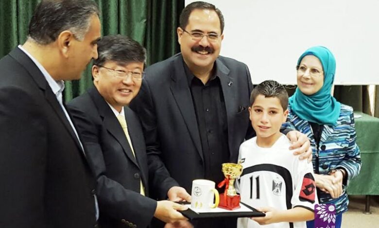 الوزير صيدم والسفير الكوري الجنوبي يكرمان اللاعب أحمد عبد الله الطياح ممثلاً عن تربية طولكرم