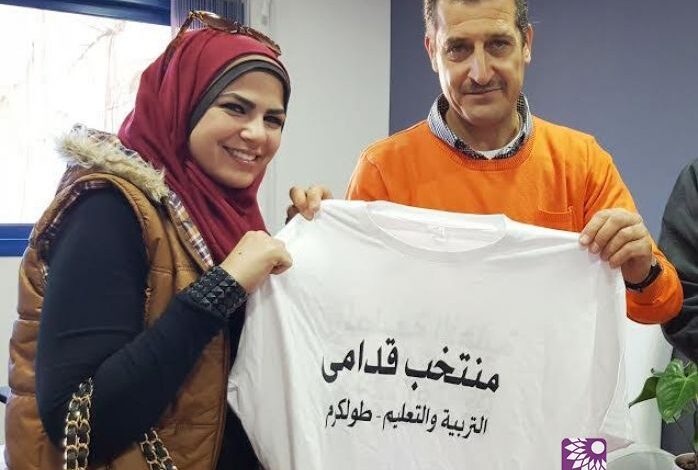 الفنانة الفلسطينية آية علي تتسلم تي شيرت لقدامى منتخب تربية طولكرم