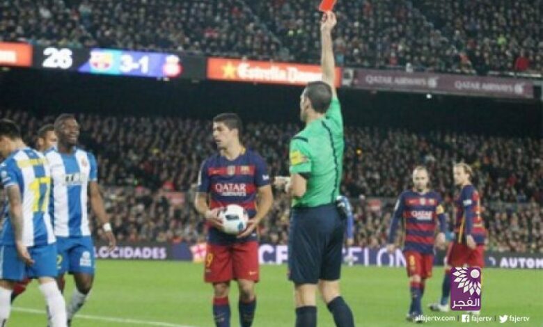 تلفزيون الفجر الجديد – وكالات: قررت لجنة المسابقات التابعة للاتحاد الإسباني لكرة القدم،  بشكل رسمي إيقاف لويس سواريز، مهاجم برشلونة لمباراتين بكأس الملك، حيث تلفظ في النفق المؤدي إلى غرف خلع ملابس ملعب “كامب نو” الذي استضاف لقاء برشلونة واسبانيول في كأس ملك اسبانيا .بعد نهاية المباراة بألفاظ نابية ضد لاعبي إسبانيول.