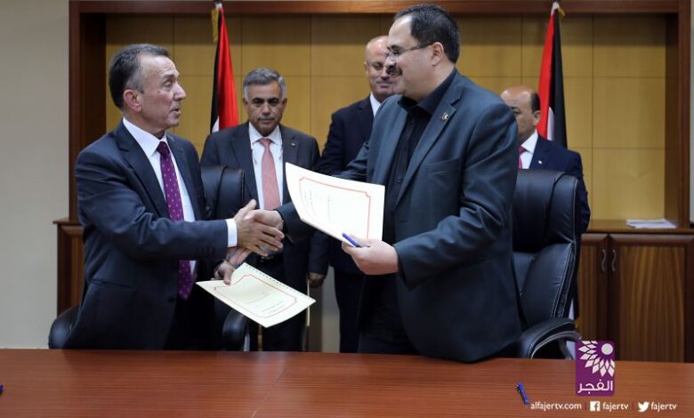 تلفزيون الفجر الجديد- برعاية وحضور رئيس الوزراء د. رامي الحمد الله، تم التوقيع على اتفاقيتي دعم بين الحكومة الفلسطينية وصندوق الأقصى- إدارة البنك الإسلامي للتنمية، اليوم الثلاثاء في مقر مجلس الوزراء برام الله، الأولى لدعم وزارة التربية والتعليم العالي في مجال تطوير الأبنية المدرسية وتجهيزها بقيمة 5 مليون دولار، وقعها عن البنك الإسلامي للتنمية د. جواد ناجي مستشار رئيس الوزراء لشؤون الصناديق العربية والإسلامية وعن وزارة التربية والتعليم د. صبري صيدم، والاتفاقية الثانية وقعها عن البنك الإسلامي للتنمية د. جواد ناجي، وعن وزارة الحكم المحلي د. حسين الأعرج، لدعم وزارة الحكم المحلي في مجال تطوير البنية التحتية وترميم المنازل في المخيمات الفلسطينية بقيمة 1.3 مليون دولار.