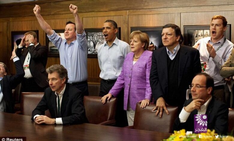 على الجانب الآخر، لم يهتم الرئيس الفرنسي الجديد فرانسو أولاند بالمباراة كما يبدو في الصورة، بينما شارك الرئيس الأمريكي باراك أوباما الاحتفال ولو شكليا مع كاميرون.