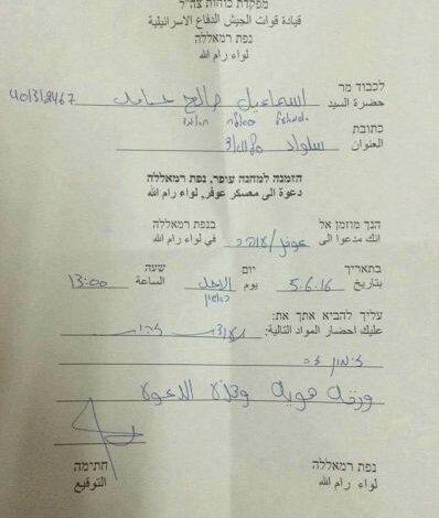 وسلمت قوات الاحتلال الشاب أحمد حسنين حامد والشاب إسماعيل صالح حامد استدعاءات للتحقيق معهم في سجن عوفر غرب رام الله، كما أخضعت منزل عمر عبد الغني حامد للتفتيش الدقيق وعبث في محتوياته.