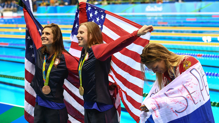صرحت الروسية يوليا يفيموفا بأنها لا تتفهم سلوك الأمريكيتين ليلي كينغ وكايتي ميلي، اللتين رفضتا مصافحتها أثناء التتويج بميداليات سباق 100 م سباحة ظهرا في أولمبياد "ريو 2016".