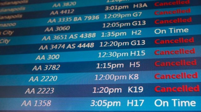 وطبقا لخدمة فلايت وير لتتبع الرحلات فقد ألغي أكثر من 1200 رحلة من وإلى مطار أوهير حتى ظهر الأحد في حين ألغيت قرابة 200 رحلة في مطار ميدواي.
