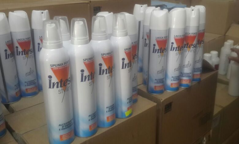 ضبط كمية من علب سبريه الشعر مخالفة للمقاييس والمواصفات