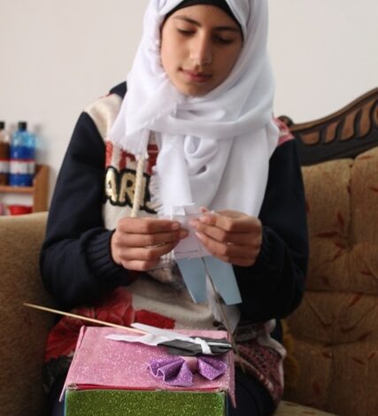 تتنوع هوايات رغد ذات الـ(13 عاماً) ما بين الرسم والخط ونسج خيوط الصوف، لتفرغ ما يلوج ببالها على شكل لوحات فنية، تهديها لصديقاتها تارة، وتارة أخرى تضعها في معرض مدرستها، وتحتفظ ببقايا من أعمالها داخل بيتها.
