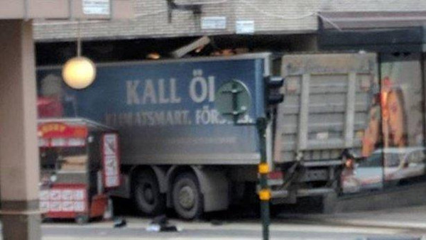 شاهد شاحنة الموت تدهس المارة في العاصمة السويدية ستوكهولم والناس يفرون