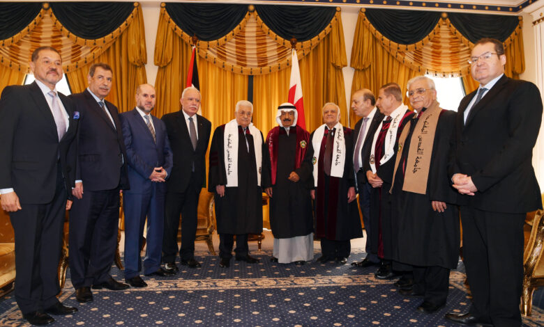 بحضور رئيس دولة فلسطين محمود عباس…”القدس المفتوحة” تمنح رئيس الوزراء البحريني الدكتوراه الفخرية