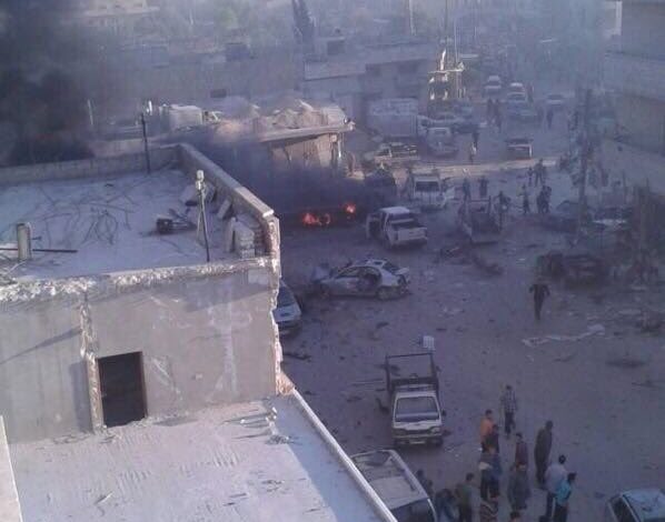 وأكد نشطاء مقتل 10 مدنيين بينهم 3 أطفال بتفجير سيارة مفخخة في سوق دانا، كما تسبب التفجير بإصابة نحو 30 آخرين.
