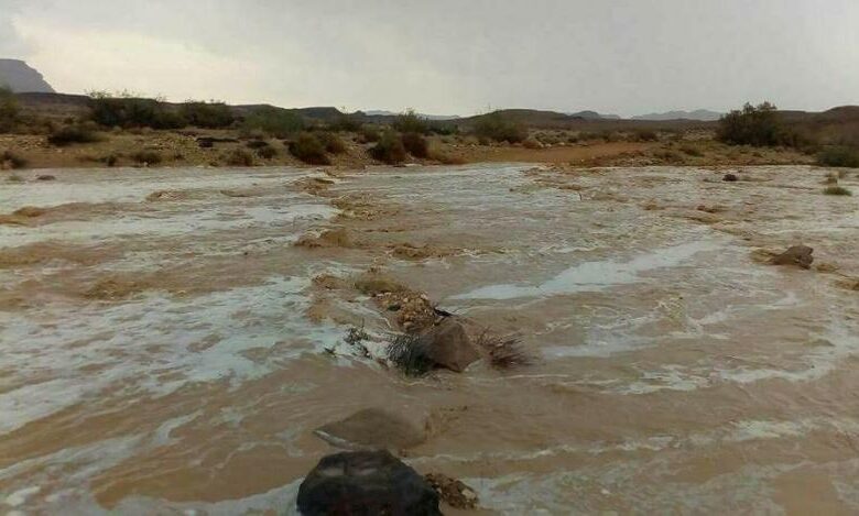وذكرت القناة ان قوات الانقاذ ارسلت مروحيتين عسكريتين لانقاذ 5 اشخاص عالقين في وسط السيول والفيضانات في الاودية.