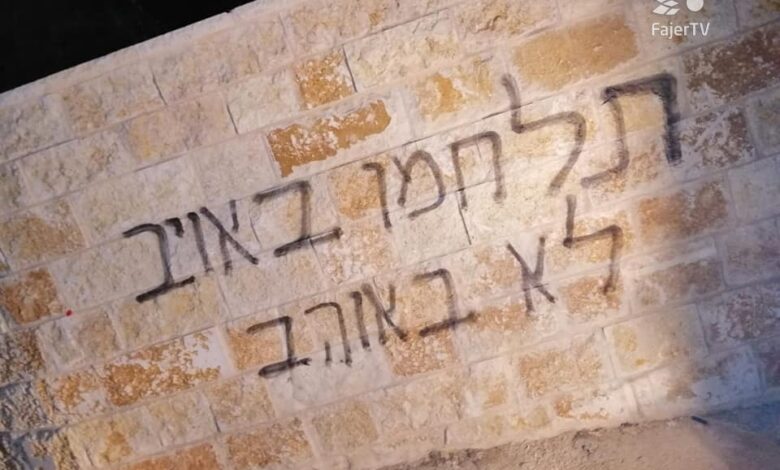 مستوطنون يخطون شعارات عنصرية في عصيرة القبلية