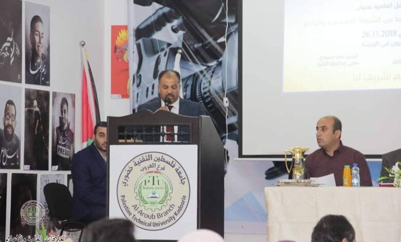 نظمت كلية العلوم والآداب التربوية بالتنسق مع وحدة العلاقات العامة والاعلام في جامعة فلسطين التنقية خضوري في فرعها في العروب، ورشة عمل بعنوان " الرسم والتصوير والتصميم ما بين الشريعة الاسلامية والواقع "، حاضر فيها كل من نائب مفتي محافظة الخليل الشيخ يسري عيدة والعميد السابق لكلية الشريعة في جامعة الخليل أ. د. حسين الترتوري، بحضور مدير الفرع د. مهيب أبو لوحة، و مساعد عميد كلية العلوم والآداب د. ضرار امريزيق، ومحاضر الفكر الاسلامي والثقافة الاسلامية في الجامعة د. حازم الزيود والهيئة الإدارية والأكاديمية، وطلبة الفرع، وعدد من المختصين والمهتمين بالفنون.