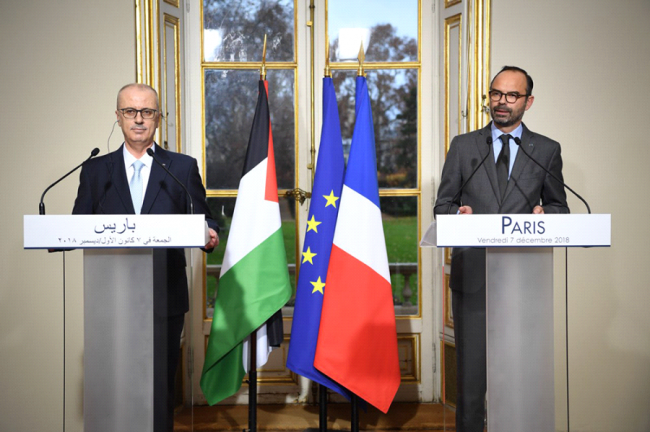 وقال الحمد الله: "إننا نقدر عاليا موقف الحكومة الفرنسية والتي تعتبر بناء وتوسيع المستوطنات الإسرائيلية في الضفة الغربية والقدس الشرقية إجراءات غير قانونية ومخالفة للقانون الدولي. وإننا ندعو الحكومة الفرنسية، كعضو دائم في مجلس الأمن الدولي، إلى العمل من أجل التنفيذ الفعال والفوري لقرار مجلس الأمن رقم 2334 الذي يؤكد أن المستوطنات الإسرائيلية غير قانونية، وكذلك أدعو الحكومة الفرنسية إلى العمل من أجل حظر منتوجات المستوطنات الإسرائيلية المقامة على الأراضي الفلسطينية المحتلة في الأسواق الفرنسية والأوروبية".